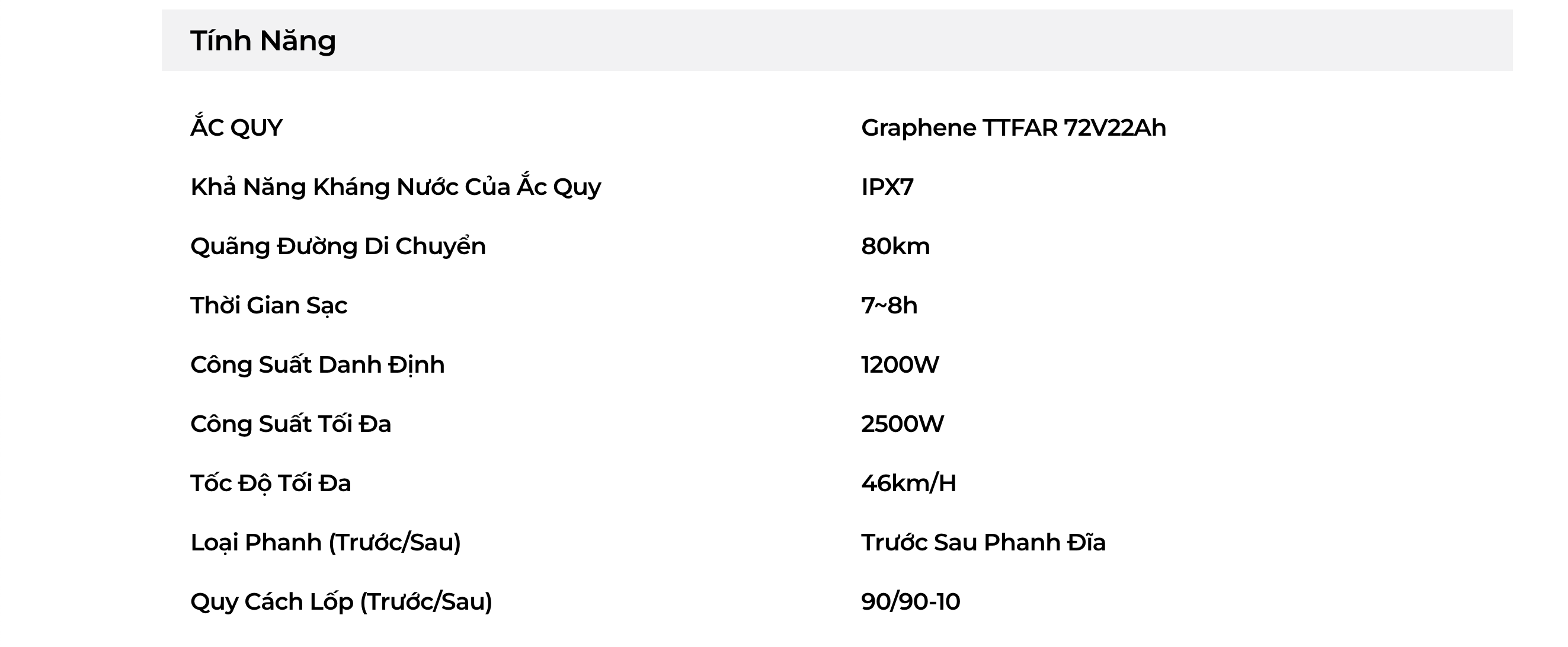 - Sử dụng ắc quy graphene bảo hành 2 năm hoặc 20.000km